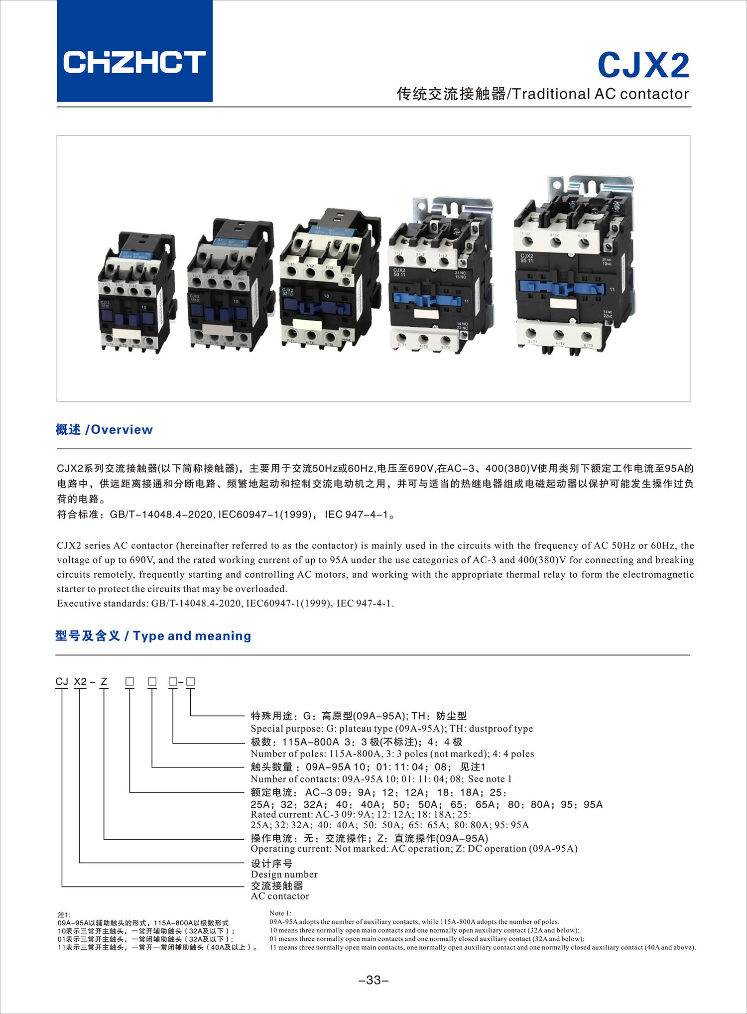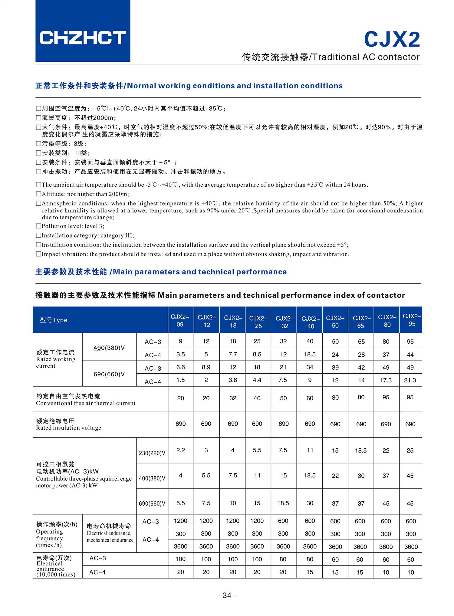 CJX2 传统交流接触器产品说明书