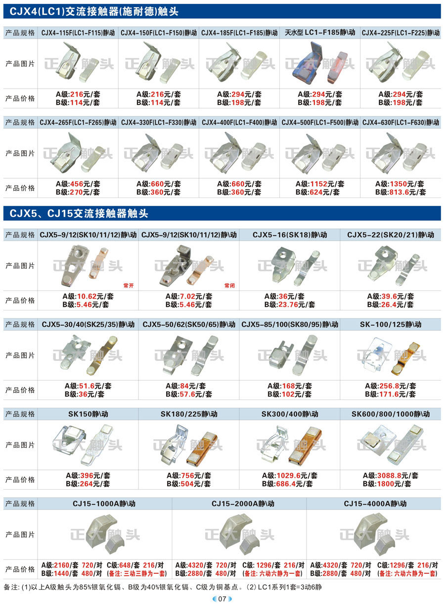 CJX4(LC1)、CJX5、CJ15交流接触器(施耐德)触头