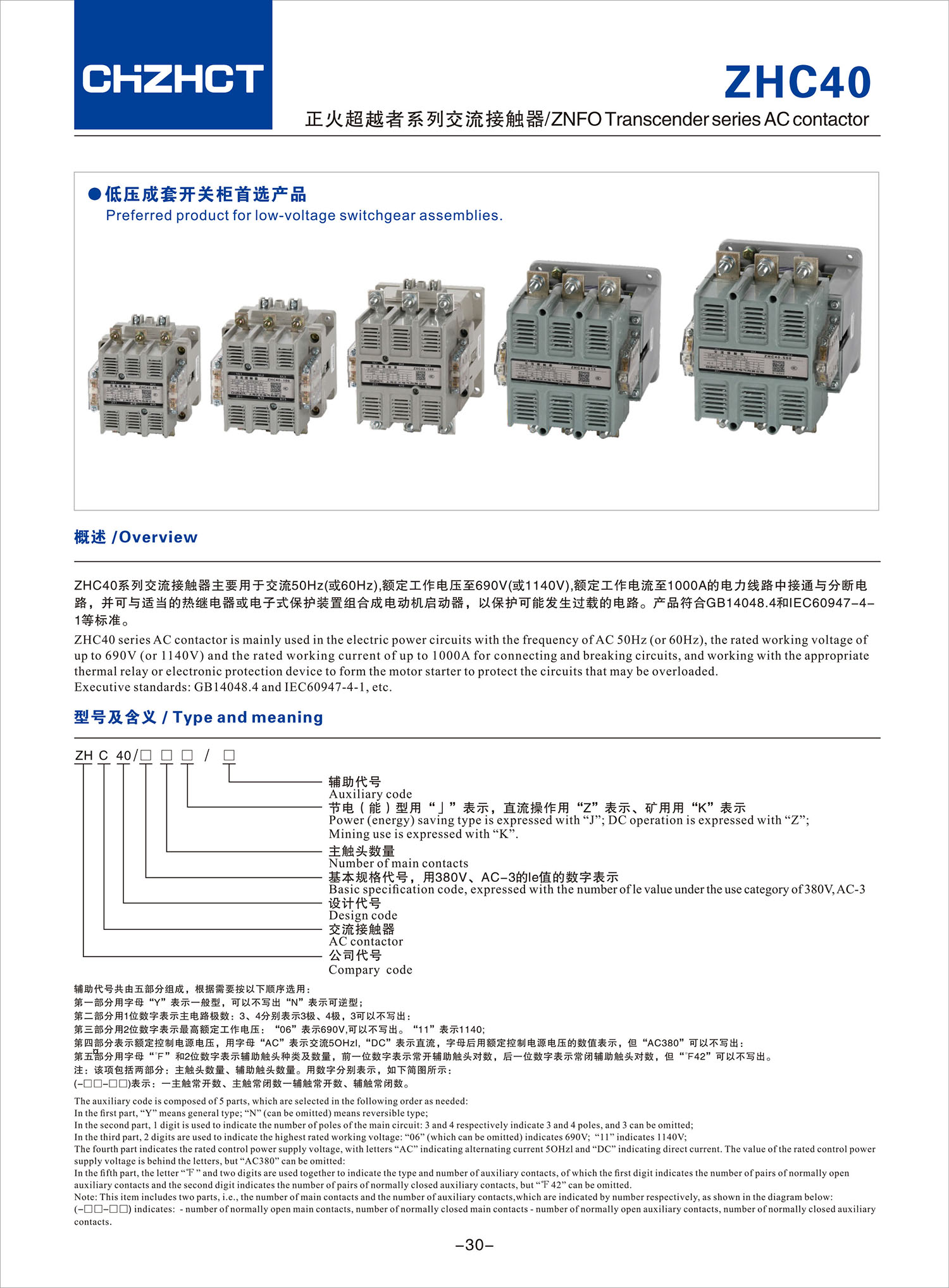 ZHC40 正火超越者系列交流接触器_正火超越者系列_新品推荐_产品中心_990金沙电气股份有限公司