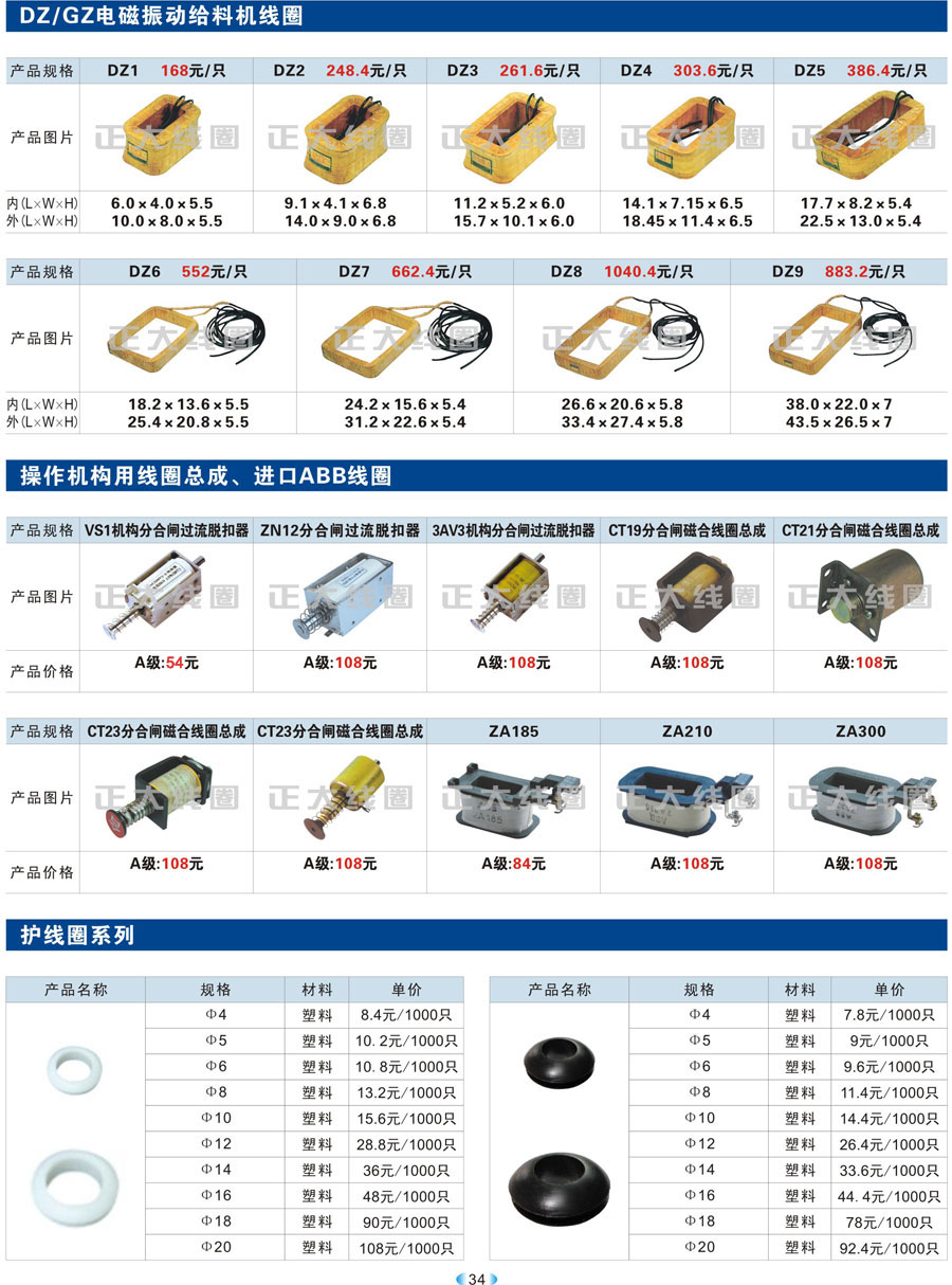 DZ/GZ电磁振动给料机线圈、操作机构用线圈总成、进口ABB线圈、护线圈系列 ↩