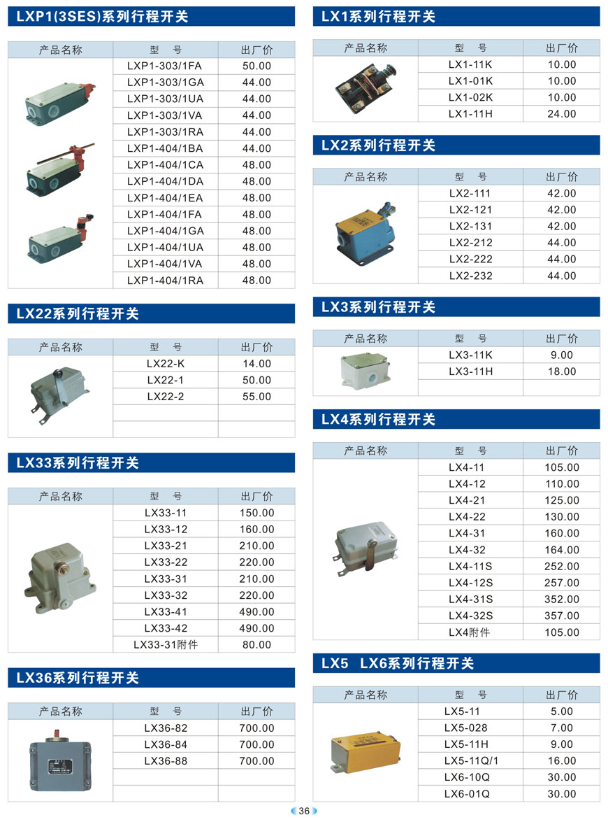 LX22、LX33、LX36、LX1、LX2、LX3、LX4、LX5、LX6系列行程开关