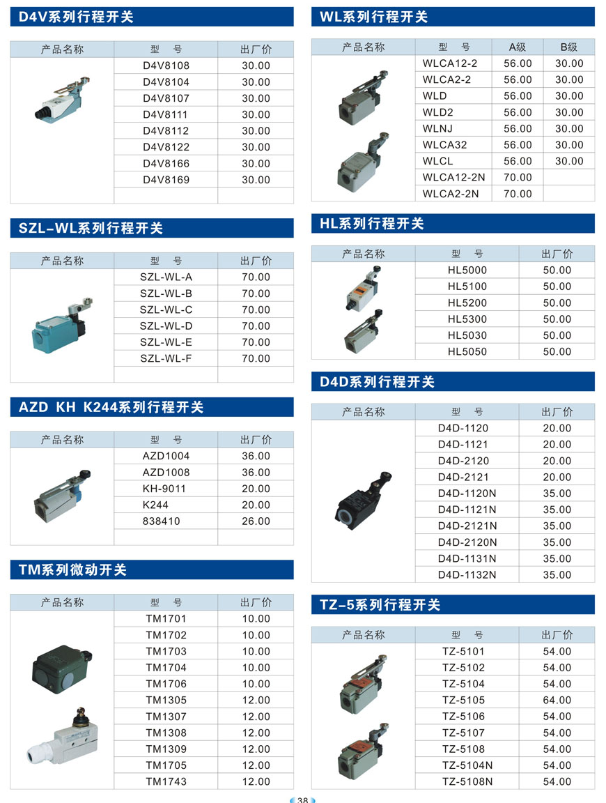 D4V、SZL-WL、AZD KH K244、TM微动、WL、HL、D4D、TZ-5系列行程开关