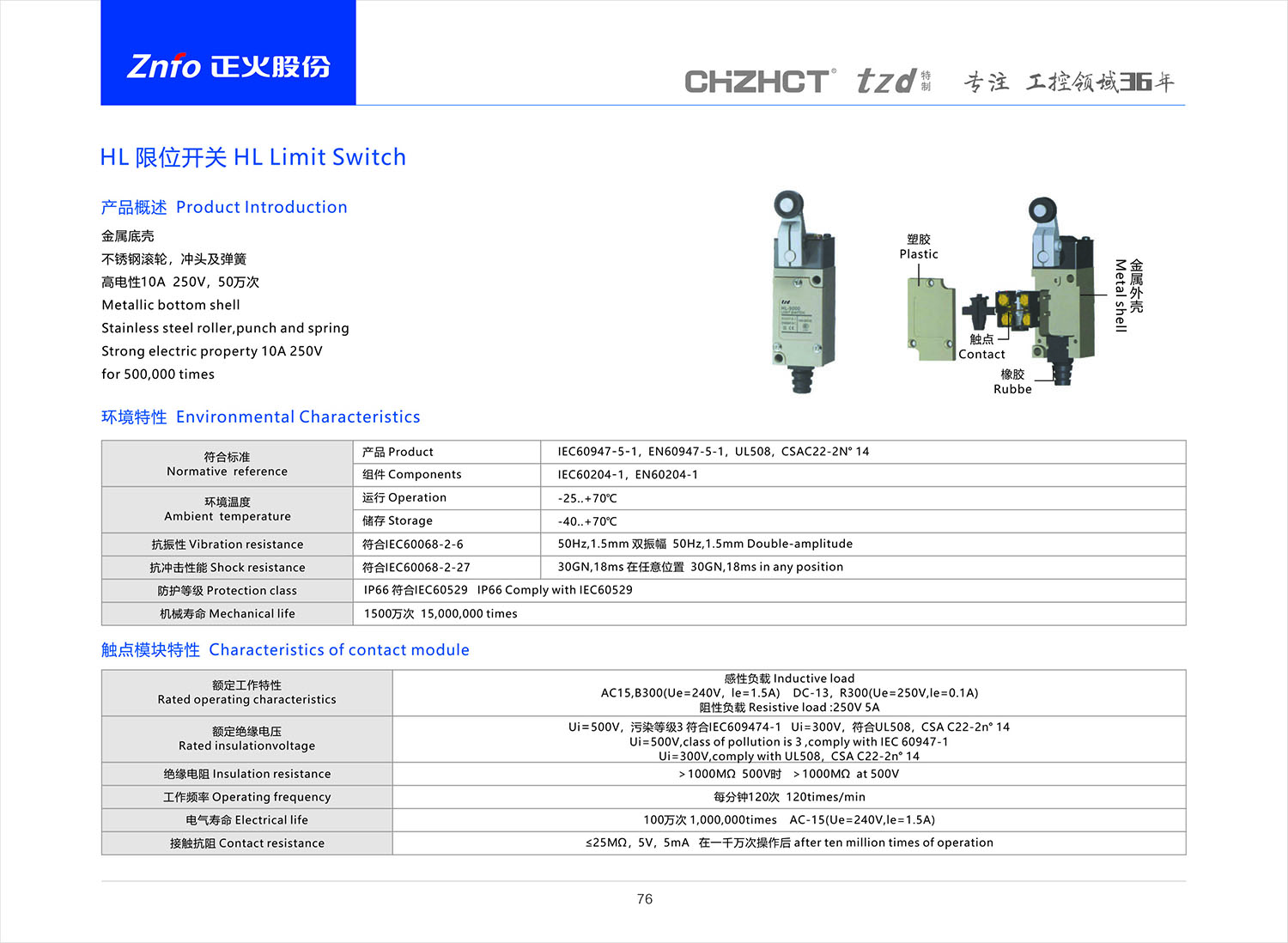 HL 限位开关产品说明书