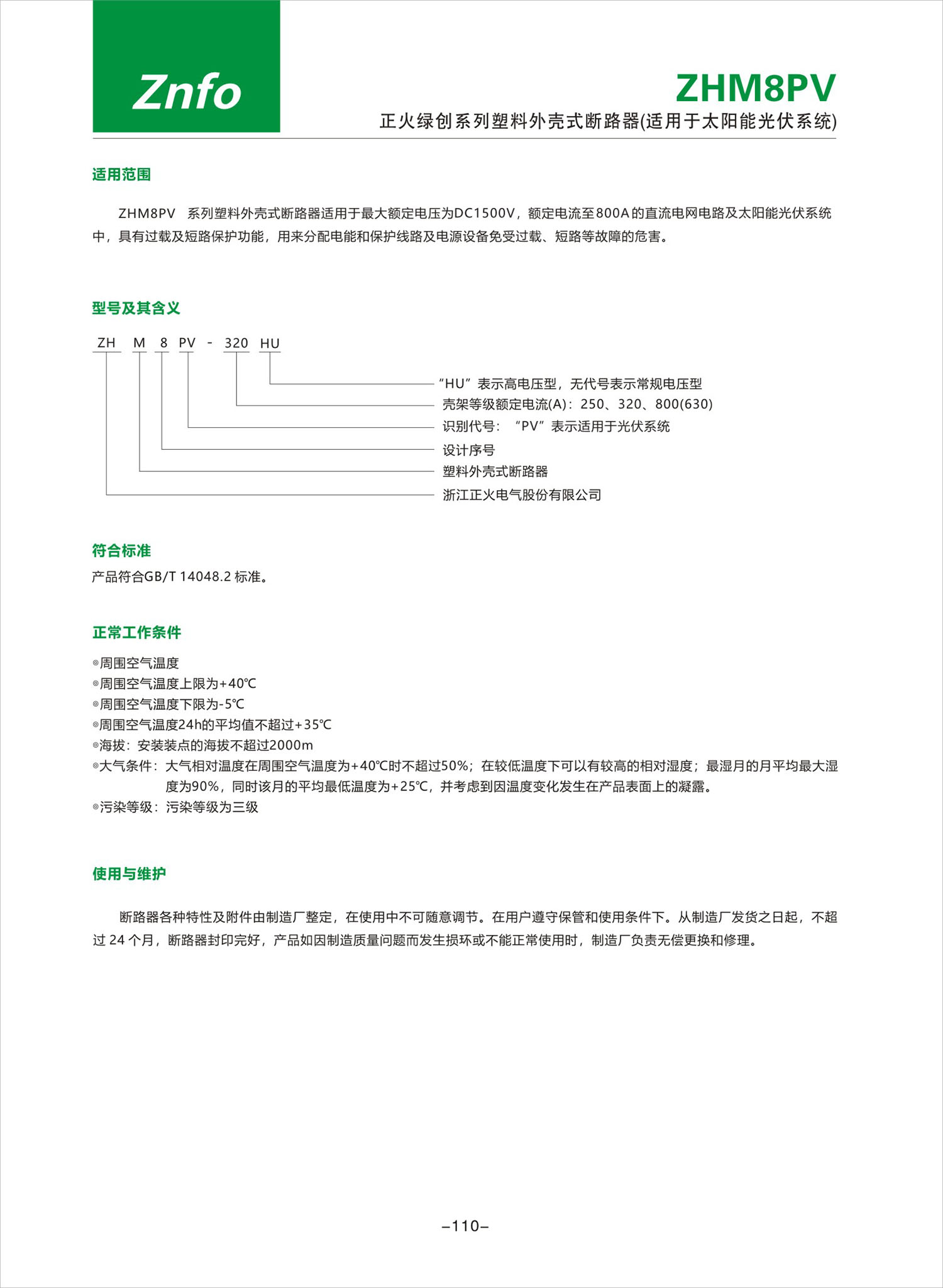 ZHM8PV系列塑料外壳式断路器产品说明书